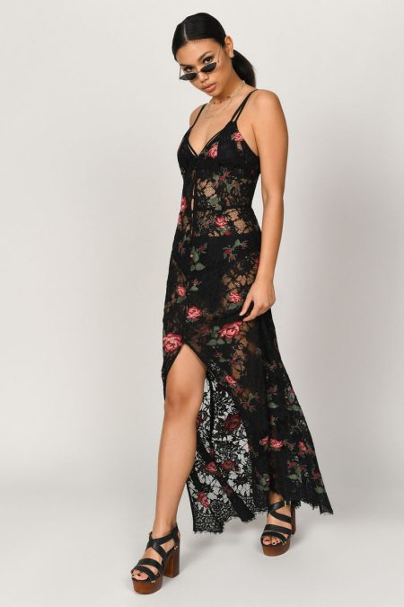 Description Radiate charm in the Claire Lace Buttoned Maxi Dress in Black. With its exquisite lace detailing and sexy high slit, this dress blends vintage elegance with contemporary glam. The button-up front and flowy silhouette ensure you’ll feel comfortable and chic, whether at a garden party or a rooftop celebration.…