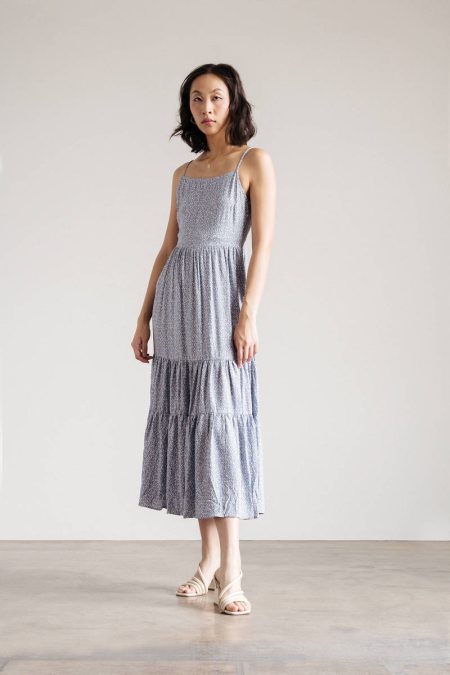Swing By Floral Tiered Midi Dress – Blue
