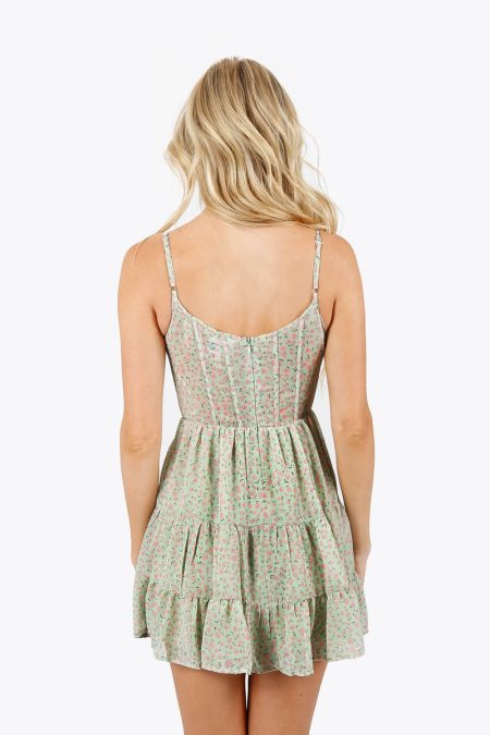 Charlaine Floral Bustier Mini Dress – Cucumber Gimblet