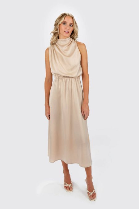 Milana Turtleneck Halter Maxi Dress – Khaki