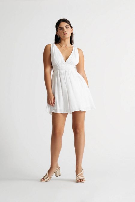 Description A mix of flirty and fun, the Braelyn Off White Ruched Side Cutout Skater Mini Dress is perfect for your next vacation. With a v neckline and side cutouts, this side cut out dress is both comfortable and stylish. The ruched sides provide a flattering fit for all body…