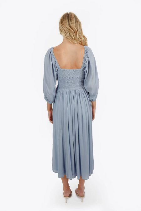 Ariadne Geri Dress Square Neck Smocked Midi Dress – Sky Blue