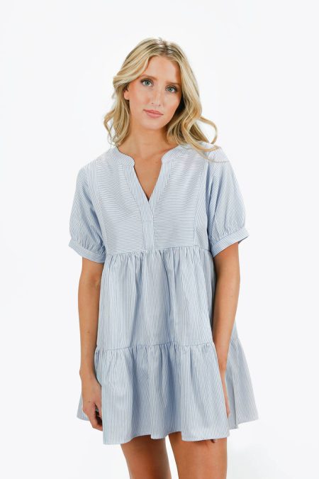 Czarina Tiered Babydoll Mini Dress – Sky