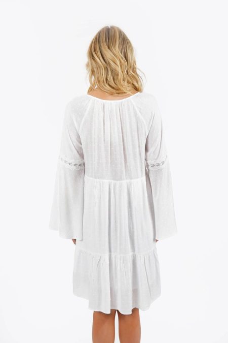 Carmilla Lace Bell Sleeve Mini Dress – White