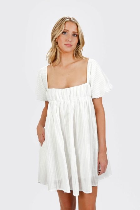 Description Say hello to sunshine and style with the Marcelle Open Back A-line Mini Dress in White! Crafted from lightweight cotton voile, this dress is your perfect partner for staying cool and chic on hot days. With playful puff sleeves and a breezy A-line silhouette, it’s made for everything from…