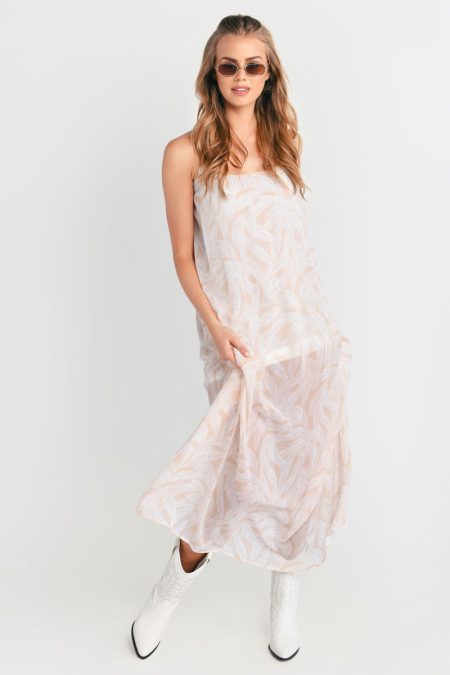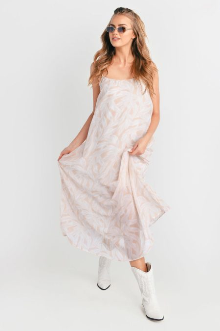 Dallas Leaf Print Open Back Maxi Dress – White Multi