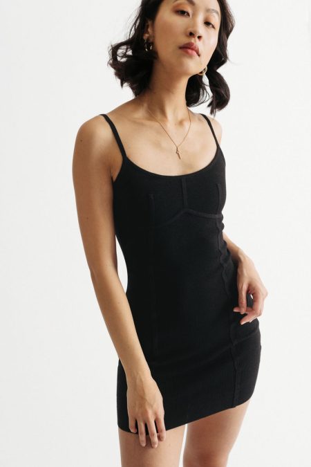 $335.00Description The Eveline Piping Scoop Neck Bodycon Mini Dress is the perfect little black dress for your next night out. The figure-hugging bodycon fit will show off all your assets, while the spaghetti straps and scoop neck add a sleek touch. The ribbed material and piping details are the perfect…